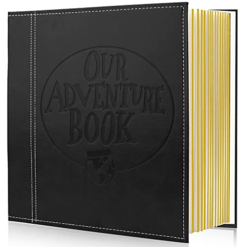 T-HAOHUA Our Adventure Book Album photo Scrapbook : anniversaire et mariage avec couverture rigide en cuir brodé, livre relié avec feuilles de papier blanc épaisses pour photos