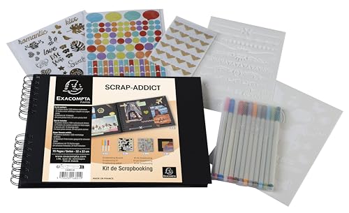 Exacompta - Réf.16801E - Album photos spiralé scrapbooking noir à personnaliser - 70 pages noires - loisirs créatifs, DIY, souvenirs, mariage, anniversaire, voyage - livré avec un kit d'accessoires