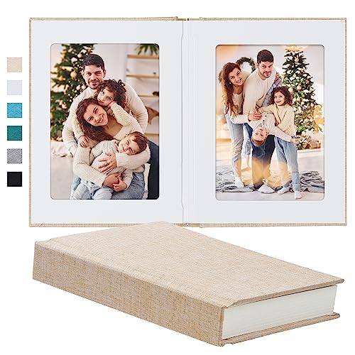 Pssoss Album photo de 12,7 x 17,8 cm avec espace d'écriture – Album photo de 12,7 x 17,8 cm – Album photo de 12,7 x 17,8 cm pour 20 photos de mariage (beige, 20 pochettes)