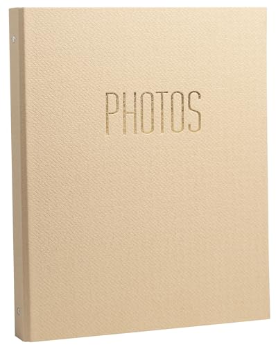 Exacompta - Réf. 17602E - Album photo classeur Office By Me - 120 photos - 60 pages noires - format 32 x 26 cm - couverture en papier texturé avec reflets brillants - marquage or - couleur beige