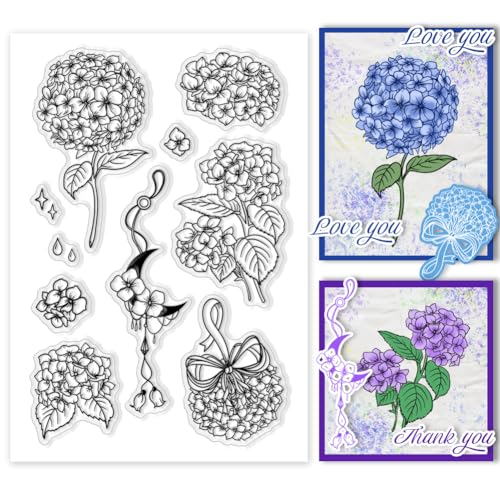 PH PandaHall Hortensias Tampons Clairs, Timbres en Silicone à Fleurs Tampons Transparents Tampons en Caoutchouc pour Albums Photos de Bricolage, Cartes de Vœux, Scrapbooking, Étiquettes-Cadeaux