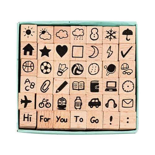 Tampon en caoutchouc en bois - Tampons d'impression transparents de 1 x 1 x 3,4 cm | Poignées en bois poli, timbres artisanaux avec étui de rangement portable, lot de tampons pour albums