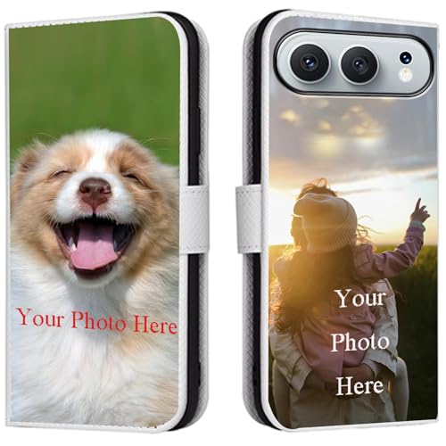 FortiCase Coque Personnalisée pour alcatel A62,Cuir Housse Clapet Protection Étui Fentes Support Case,Personnalisable Etui avec Votre Propre Photo Image Texte Housse - White-LN4