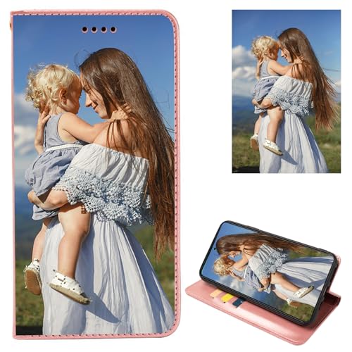 FortiCase Coque Personnalisée pour alcatel A62,Cuir Housse Clapet Protection Étui Fentes Support Case,Personnalisable Etui avec Votre Propre Photo Image Texte Housse,2 Photo - Pink
