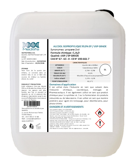 ALCOOL ISOPROPYLIQUE EP / USP GRADE 99,9% - 5L