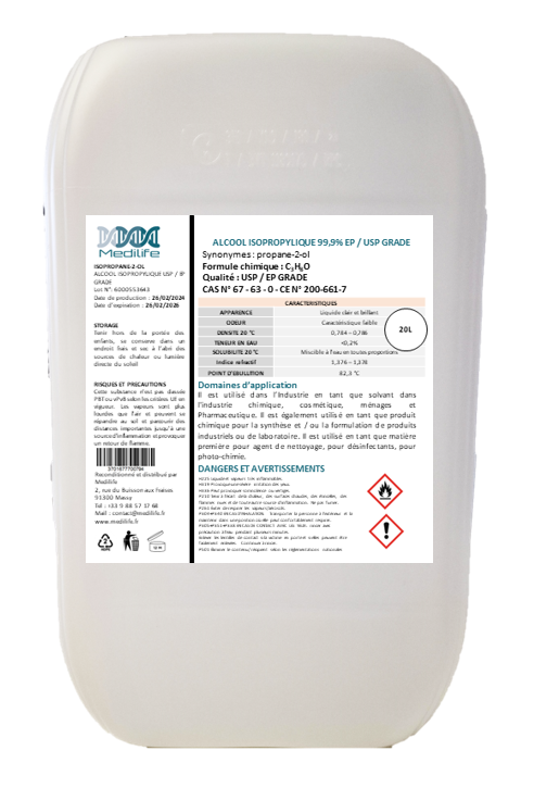ALCOOL ISOPROPYLIQUE EP / USP GRADE 99,9% - 20L