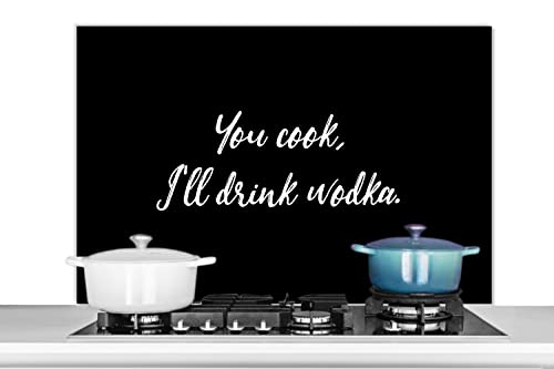 Credence Citations - Boire - Proverbes - Tu cuisines, je bois de la vodka - Alcool Fond de hotte 100x65 cm Credence aluminium Plaque inox de cuisine