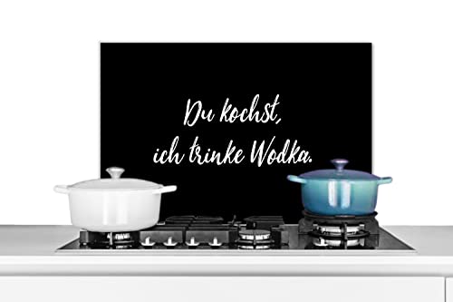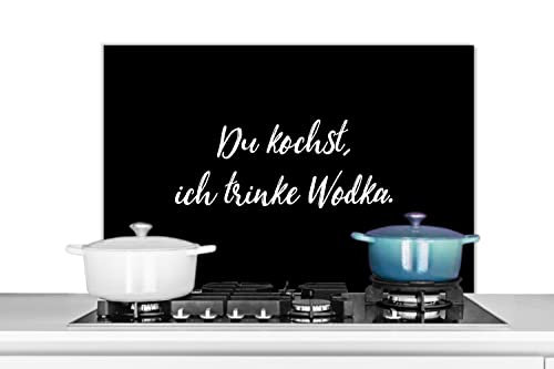 Credence Proverbes - Citations - Alcool - Vodka - Du kochst, ich trinke vodka Fond de hotte 100x65 cm Credence aluminium Plaque inox de cuisine