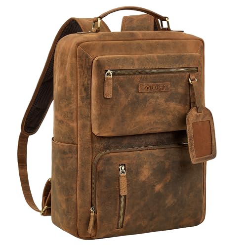 STILORD 'Alejandro' Sac à Dos Ordinateur Portable 15,6 Pouces en Cuir - Grand Sac d'Affaires et de Voyage - Backpack Antivol pour Cabine, Couleur:bourbon -marron