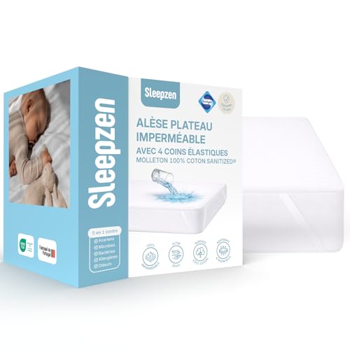 Sleepzen - Protege Matelas 80x160cm Alese 100% Coton Bio Certifié Oeko-Tex® - Barrière Contre Les Acariens, Hypoallergénique, Respirant, Silencieux - Fabriqué en Europe - Format Alèse Plateau