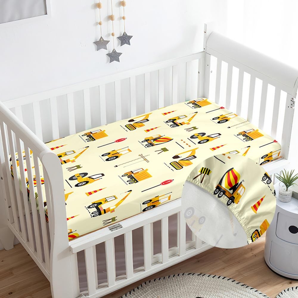 Odot Drap Housse 80x160cm Enfant, Alèse Drap Housses pour Lit Bébé Ajustable Extensible Protège Matelas pour Berceau Doux Respirant Microfibre -Excavatrice Jaune