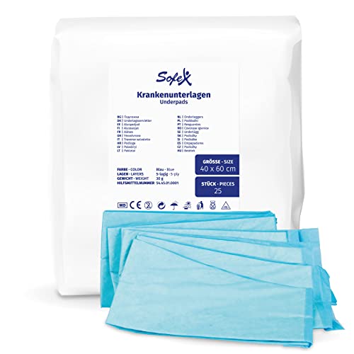 Sofex Alèses jetables 40x60 cm – 25 pièces, 5 Couches – alèses médicales de lit Incontinence, alèse jetable pour bébé, alèse pour Chien, alèses jetables absorbantes, Anti-fuites et antidérapantes