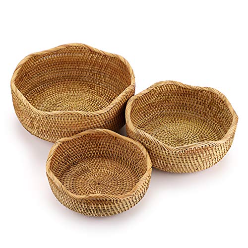 SUMTree 3pcs Panier de Service Corbeille à Fruits Rond Panier d’osier Rangement pour cookies, pain,fruits (25+23+19CM)