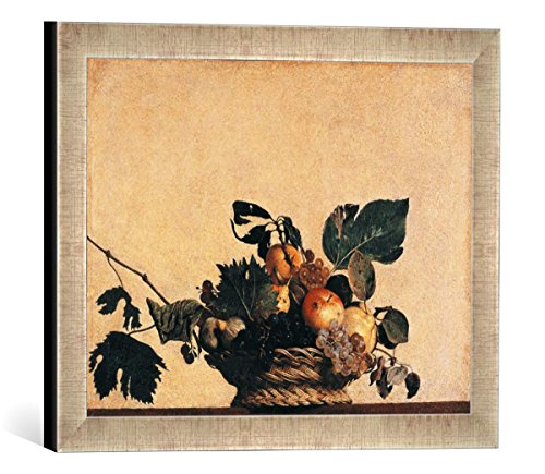 Kunst für Alle 'Encadré Image de Michelangelo Merisi Caravaggio La Corbeille à Fruits Impression d'art dans Le Cadre de Haute qualité Photos Fait Main, 40 x 30 cm, Argent Raya