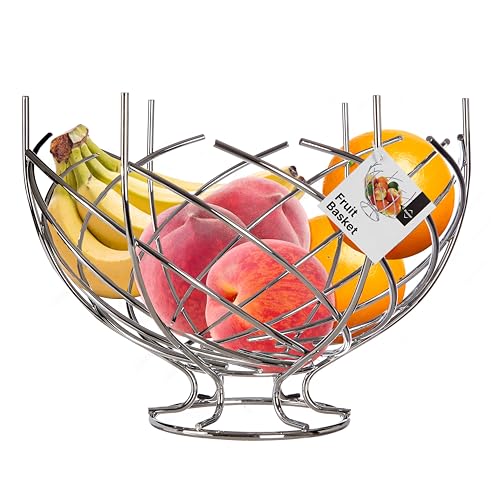 axentia Corbeille à Fruits Ronde, Corbeille à Fruits en Fil de Fer Chromé, Assiette de Fruits avec Grande Ouverture, Ø env. 29 cm, H env. 12,5 cm, Argenté