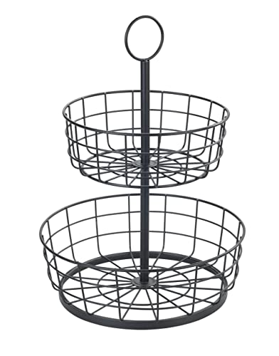 joeji's Kitchen Corbeille à fruits à 2 niveaux - Paniers en fil de fer - Panier de Rangement en Fil métallique Support de Fruits pour Pain collations, Noir