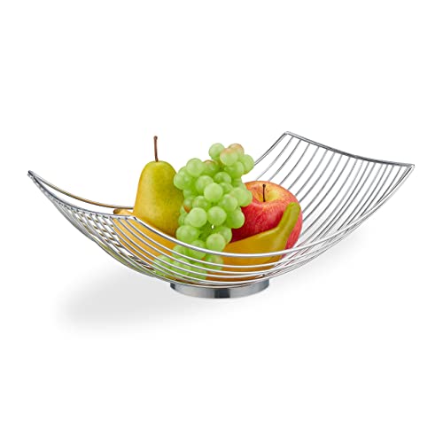 Relaxdays Corbeille à Fruits et légumes en métal, Design Ergonomique & Moderne, HxLxP : 11,5 x 32,5 x 24 cm, argentée