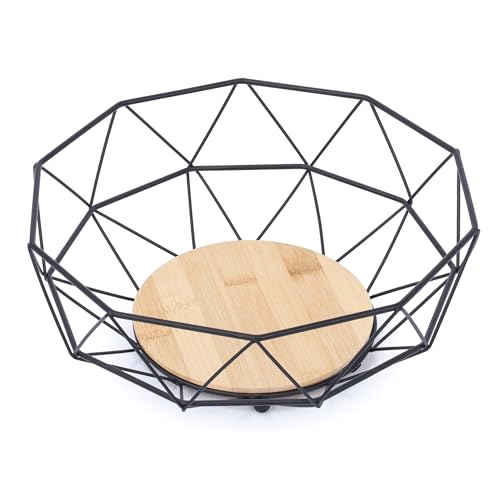 IPEA Panier à Fruits De table en Métal – Design Moderne et Géométrique – Corbeille à Fruit, Agrumes, Noix, Aliments – Porte-fruits de Centre de Table Ouvert - Noir