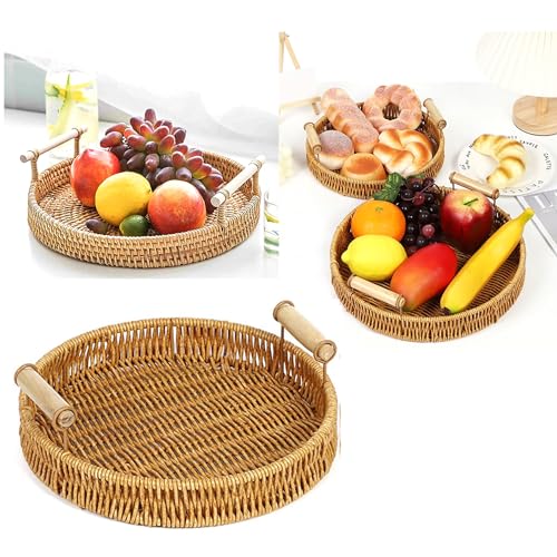 SUMTree Panier de service corbeille à fruits panier en rotin décoration support de rangement pour table, bureau, salon (25cm)