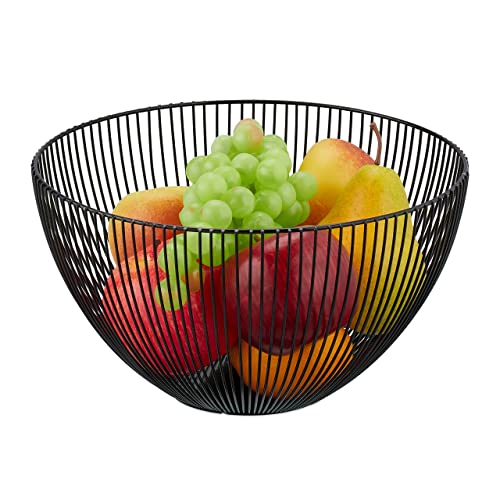Relaxdays Corbeille à Fruits et légumes, en métal (Fer), Ronde, Panier au Design Moderne, H x D : 14 x 25 cm, Noire
