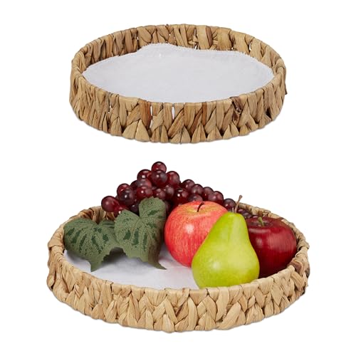 Relaxdays Corbeille à Fruits, Lot de 2, Panier déco pour Fruits, Pain, etc., Jacinthe d’Eau, HxLxP : 7x30x30 cm, Nature