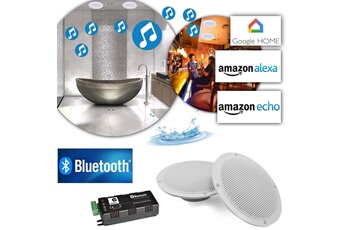 Kit 2 haut-parleurs coniques 5" / 80W - Grille et résistance à l'eau avec Amplificateur Google Home Bluetooth Amazon Alexa Echo