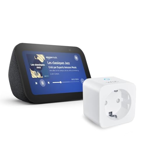 Echo Show 5 (Nouvelle génération) | Anthracite + WiZ Prise Connectée, Fonctionne avec Alexa - Kit de démarrage Maison connectée