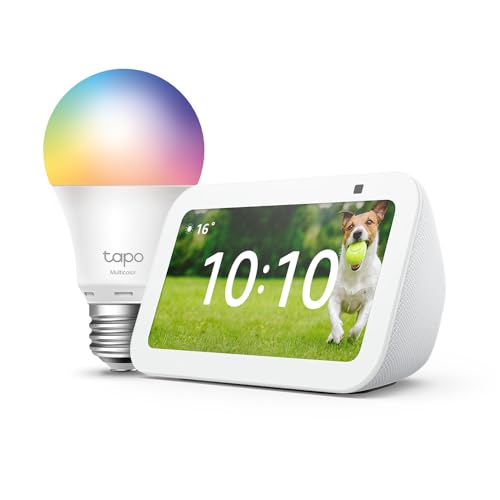 Echo Show 5 (3e génération) | Blanc + Tapo L530EA ampoule connectée LED (E27), Fonctionne avec Alexa - Kit de démarrage Maison connectée
