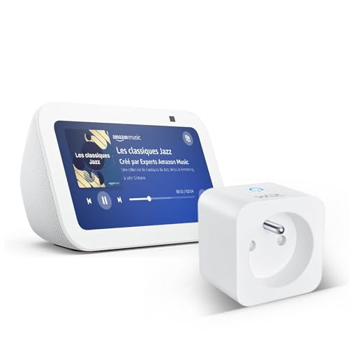 Echo Show 5 (3e génération) | Blanc + Tapo Matter Prise Connectée, Fonctionne avec Alexa - Kit de démarrage Maison connectée