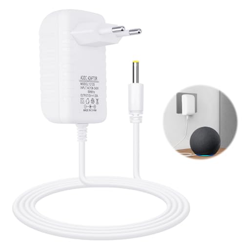15W Adaptateur Chargeur Amazon Echo Dot 12V 1.25A pour Alexa Echo Dot 3ème 4ème 5ème génération, Echo Dot avec Horloge, Echo Show 5 1ère 2ème génération, Echo Spot, Cube 1.8M Cordon Alimentation