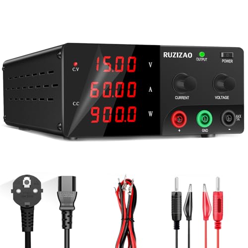 RUZIZAO Alimentation de Laboratoire 15V 60A 900W Haute Puissance Alimentation Stabilisée Réglable avec Output/Encodeur, Bloc d'alimentation de Laboratoire pour Test de LED/Automatisation/Laboratoire