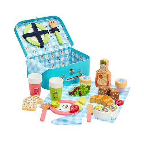 Bluey – Kit dinette de Pique-Nique – Jouet en Bois 30 pièces pour Enfants avec Panier, Couverts et Aliments factices – Fabriqué avec du Bois certifié FSC – Kit de Jeu créatif et captivant