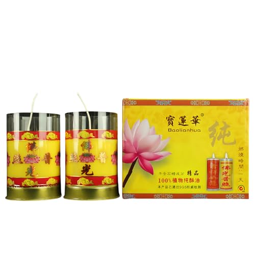 All Souls' Day Candles Plant Ghee – Ensemble commémoratif coupe-vent avec base en métal et briquet long (jaune/rouge, combustion sans fumée) (1 jour, jaune)