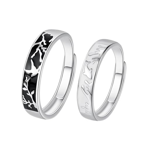 Homxi Bague Réglable Alliance Gravure en Argent Couple 925, Étoile, Bague Alliance Argent Noir Homme