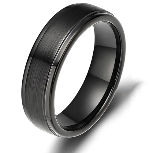 Homxi Gothique Bague Homme,Bagues Rond 6mm Alliance Acier Inoxydable Homme Noir Bague Punk Taille 54