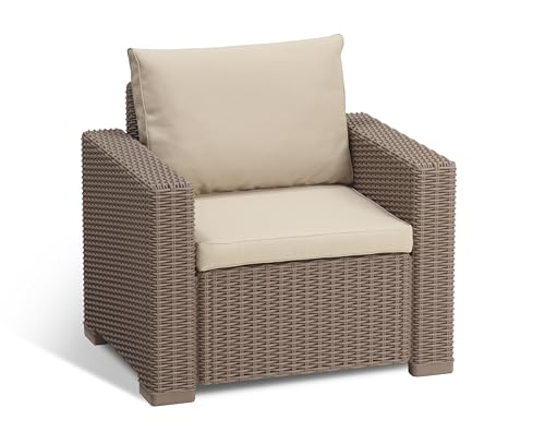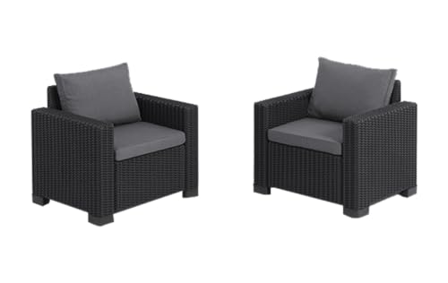 Keter Allibert by California Lot de 2 fauteuils Salon de Jardin avec Coussins d'assise et de Dossier, en Plastique, Aspect rotin, Ronds, 83 x 68 x 72 cm