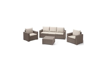 Salon de jardin en imitation résine tressée allibert avec table basse - 5 personnes - california - beige CALIF5POLYCAPPU