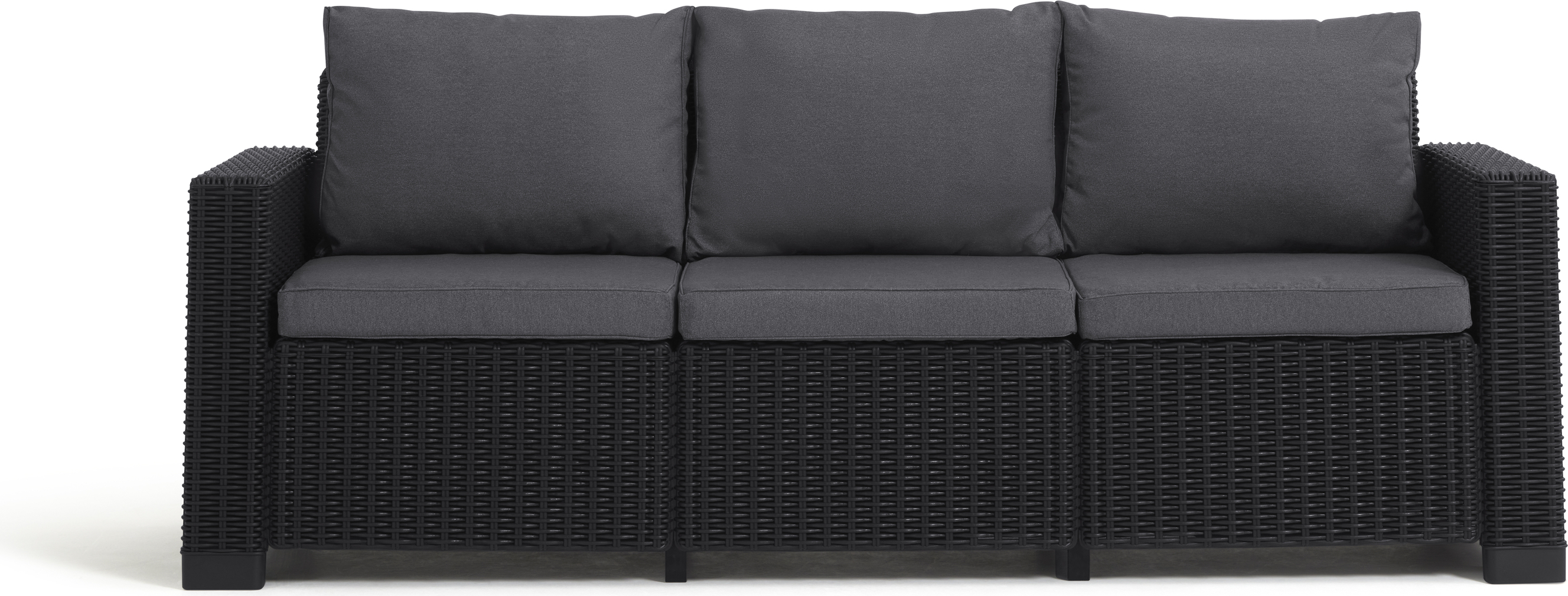 Keter Allibert by California Canapé de Jardin 3 Places avec Coussins d'assise et de Dossier, en Plastique, Aspect rotin, Rond, Graphite/Gris Froid, 199 x 68 x 72 cm
