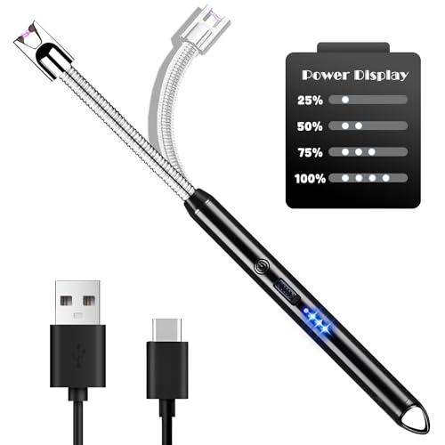 Allume Bougie Electrique, Rouclo Briquet Électrique USB Rechargeable avec Affichage LED,Briquet Arc Électrique Coupe-Vent sans Flamme pour Cuisine,Bougie,Barbecue,Cheminée,Gazinière (Noir)