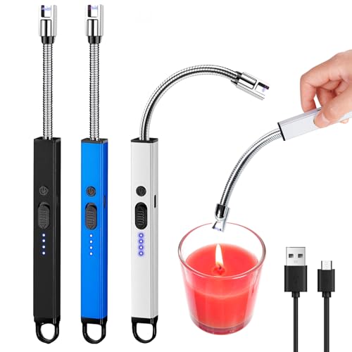 Lot de 3 briquets à arc électrique - Briquet long - Rechargeable par USB - Écran LED électrique - Allume-bougie flexible pour bougies, cuisine, barbecue, four, cuisine