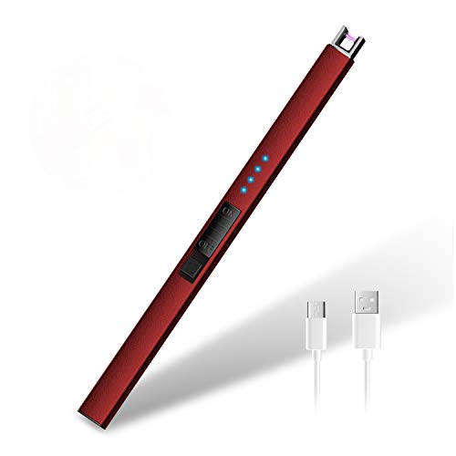Rouclo Allume Bougie Electrique, Briquet Électrique Rechargeable USB avec LED Indicateur, Briquet Arc Électrique Coupe-Vent sans Flamme pour Cuisine,Bougie,Barbecue,Cheminée (Rouge)