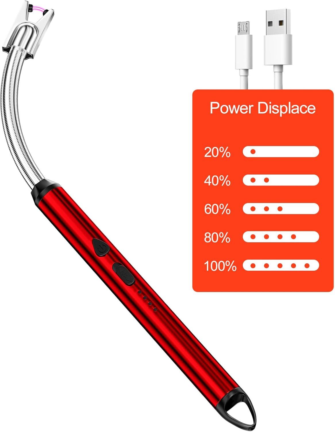 iJiGui Allume Bougie Electrique, USB Rechargeable Briquet Électrique Arc, Briquet Électrique avec 360 Diplôme Neck pour Barbecue,Cuisine,Cuisinière et Camping en Excursions (Rouge)
