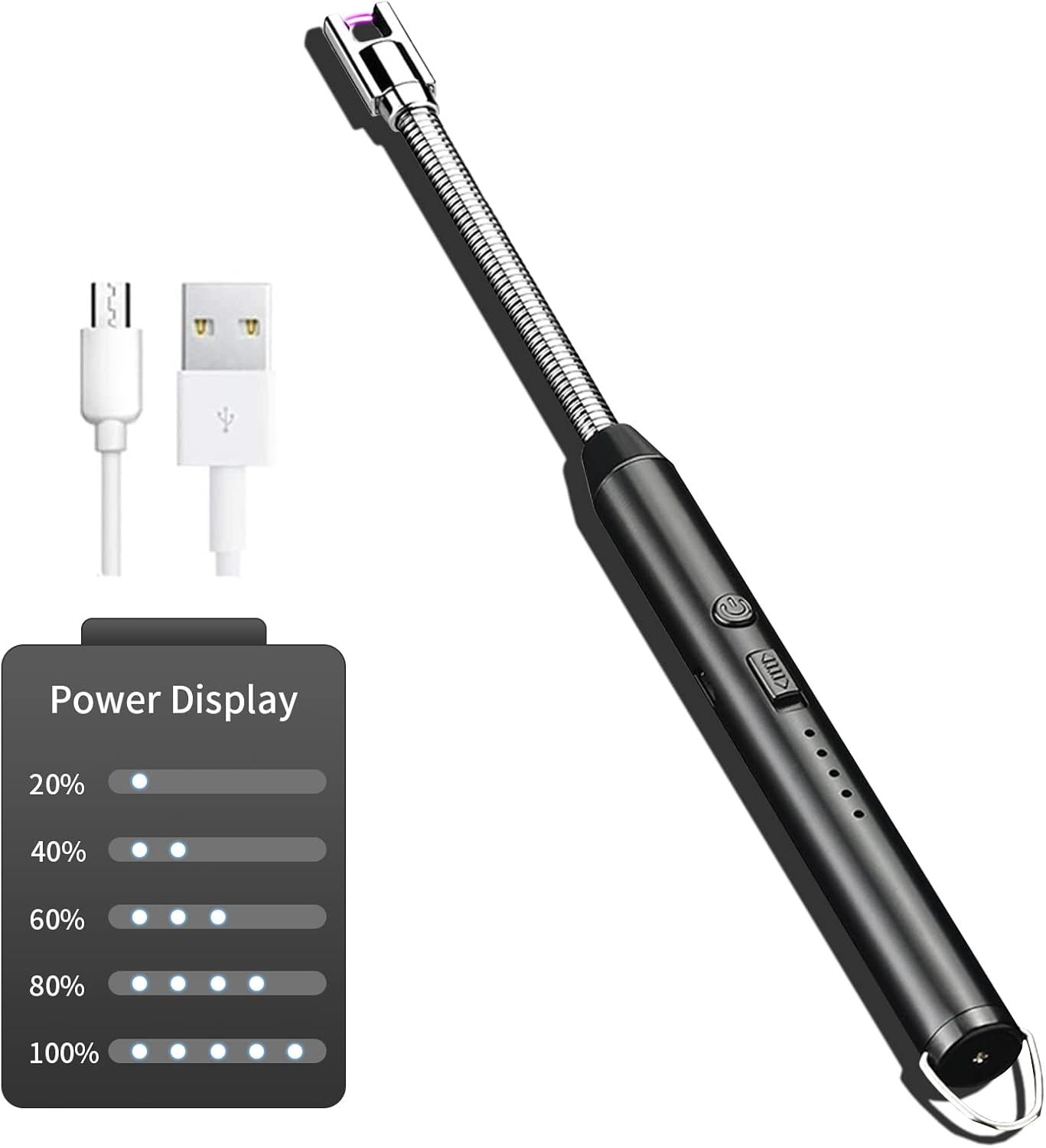 Allume Bougie Electrique, Briquet Arc Électrique Rechargeable Usb Avec Affichage De Batterie Led Long Flexible 360º Coupe-Vent Sans Flamme Pour Cuisine Barbecue Grils Bougie Gazinière, Noir