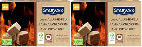 STARWAX - Cubes Allume-feu - Jusqu'à 10min de Combustion - Allumage Rapide - N'altère Pas la saveur des Aliments - PEFC - x64 Cubes, Neutre (Lot de 2)