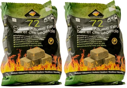 Cheminett - Cubes Allume Feu Naturels - 72 Pièces - À Base de Sciure de Bois de Conifères Certifié FSC et d’Huile Végétale - Temps de Combustion 8 à 10 Min, Marron (Lot de 2)
