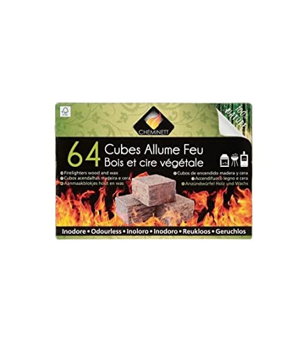 CHEMINETT Allume feu Cubes Bois 100% d'origine végétale FSC - 64 Cubes - Double Plaque prédécoupée
