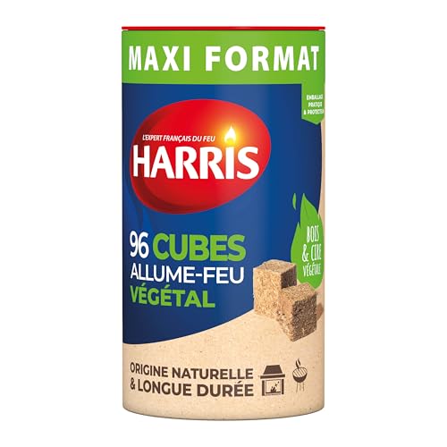Harris - 96 Cubes Allume feu - 100% végétal - Maxi Format Cylindre - sans Odeur - Longue durée - Rapide et Facile d'utilisation - Intérieur & Extérieur - Entreprise française - x96