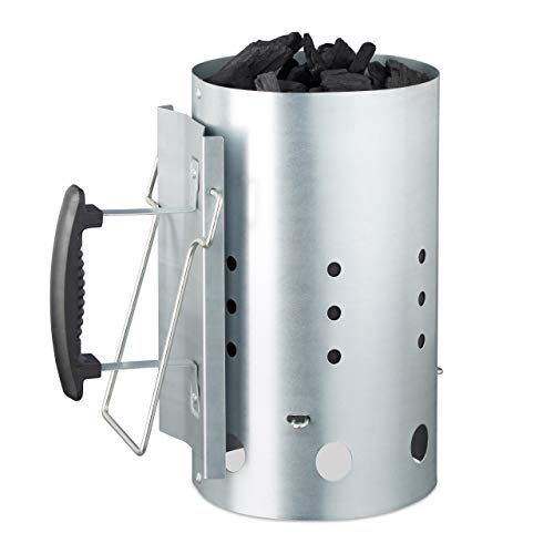 Relaxdays 10022312 Cheminée d’allumage charbon en acier allume feu cheminée barbecue grill HxD: 27 x 16 cm, grill starter, argent