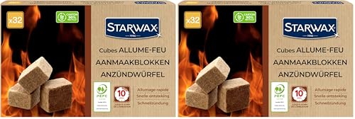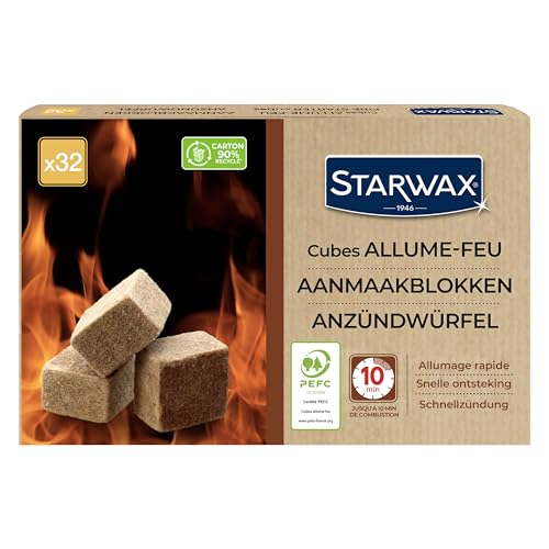 STARWAX - Cubes Allume-feu - Jusqu'à 10min de Combustion - Allumage Rapide, Propre et sans Odeur - N'altère Pas la saveur des Aliments - PEFC - Lot de 32 Cubes