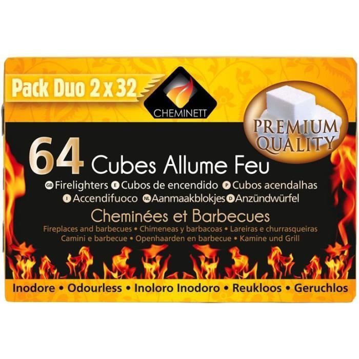 CHEMINETT Allume feu Prenium Quality en paraffine - 64 cubes